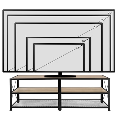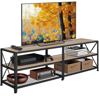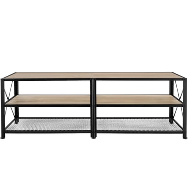Ge ditt vardagsrum ett nytt blickfång med denna stiliga TV-bänk från tectake, som kombinerar trendig industriell design med funktionalitet. Den öppna planlösningen, som sträcker sig över 3 nivåer, erbjuder gott om utrymme för både TV och tillbehör. TV-bänken i varmt trä och svalt stål skapar en balanserad och inbjudande atmosfär med en rå, men ändå hemtrevlig känsla. De 4 lättskötta spånskivorna med naturlig ådring och de X-formade sidostöden ger en fin kontrast till den enkla, eleganta designen. Den solida metallramen i chic svart, tillsammans med 6 höjdjusterbara plastfötter som kompenserar för ojämna golv, säkerställer en hög stabilitet.