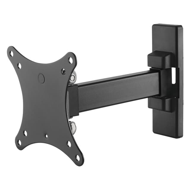 Modernt utdragbart TV-väggfäste. Det här väggfästet är lämpligare för mindre tv-apparater. Det finns plats för enheter från 13 till 27 tum. Monteringsmetoden är inställd enligt VESA-standarden 100x100 mm och bör kunna användas för alla moderna TV-apparater. Kontrollera TV:ns storlek, vikt, VESA och vägg innan du köper. Det universella VESA-monteringssystemet är ett standardmått för väggfästen. Du hittar enkelt de fyra hålen på baksidan av din TV. Det här fästet har ett universellt system som passar alla TV-märken på marknaden.