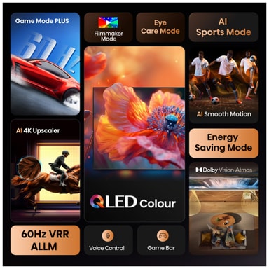 Förhöj din spelupplevelse med Game Mode PLUS och en integrerad spelpanel som kontrollcenter. VRR och ALLM minskar input lag och eliminerar tearing. Njut av följsamt gameplay – på en TV till rätt pris!