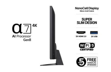 LG NANO82 levererar levande och skarp bild med NanoCell-teknologi, HDR10 och α7 AI Processor 4K Gen8. Smart uppskalning, webOS och praktiska funktioner gör den perfekt för all vardagsunderhållning – allt i en stilren design med smidigt stativ.Läs mer om produkten
