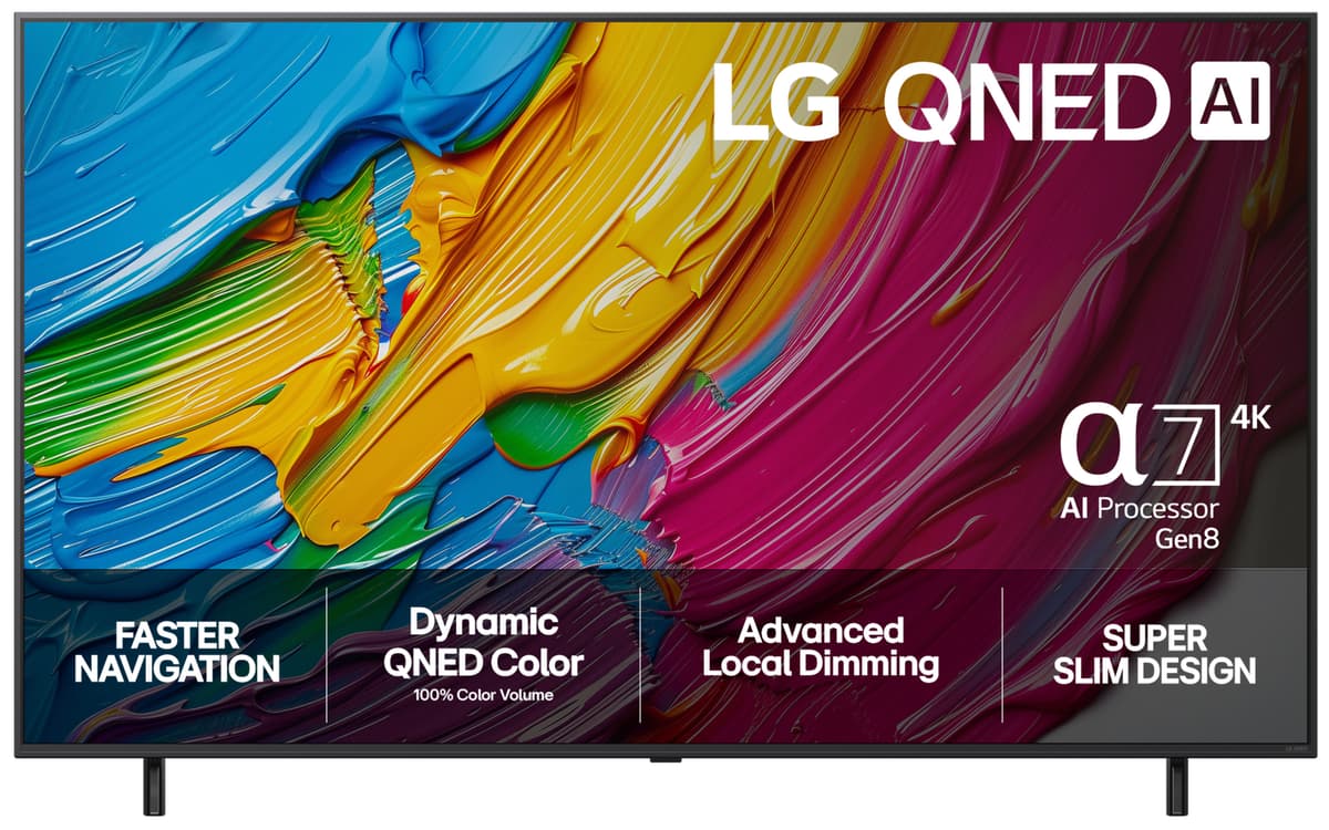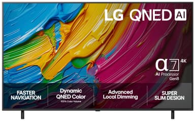 LG QNED 80 kombinerar α7 AI Processor 4K Gen8 och QNED evo Colour för livfulla färger och stark kontrast. HDR10 Pro och Local Dimming förbättrar bilden, medan den 29 mm tunna designen med flexibelt stativ gör att den passar perfekt i alla rum.Läs mer om produkten