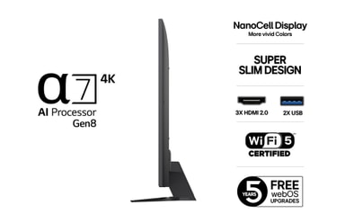 Upplev en naturtrogen bild tack vare NanoCell-precision. Med kraften från NanoCell-teknologi och α7 AI Processor 4K Gen8, levererar NANO82 en levande och skarp bild i 4K HDR10 och smidig uppskalning. Med kraften från webOS, smarta funktioner och ett snyggt stativ är det en mångsidig TV som passar all daglig underhållning.