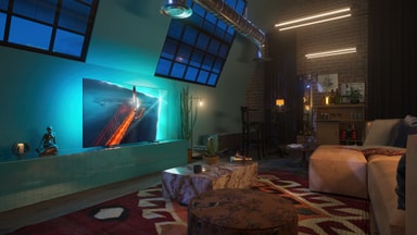 Ambilight TV-modeller är de enda TV-apparaterna med smarta LED-lampor bakom skärmen som reagerar på det du tittar på och omsluter dig med en ljus-halo av färger. Den ändrar allt: TV:n verkar större och du kommer att bli mer uppslukad av de program, filmer och spel du gillar mest.