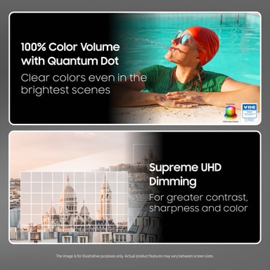Förhöj TV-upplevelsen med färgsprakande bildkvalitet i en tunn stilren design. Samsungs ljusstarka QLED-teknik sätter färg på film och TV med klara verklighetstrogna nyanser, hur mörk eller ljus en scen än är.