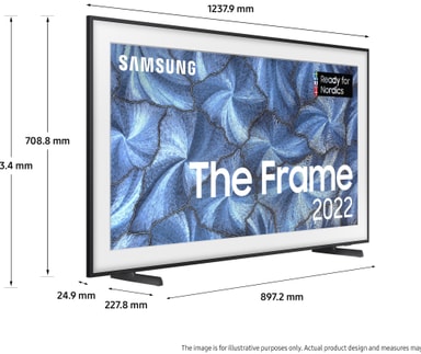 "The Frame har en skarp och färgrik bild. Med ett snyggt utseende och matchande ramar i olika färger får du en stilren TV som enkelt smälter in i omgivningen."