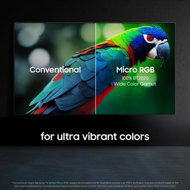 Samsung 75" R95H Micro RGB 4K Smart TV lyfter bildkvaliteten till premiumklass med en förfinad balans mellan ljusstyrka, precision och intelligent optimering. Byggd kring Micro RGB-belysning och en uppgraderad AI-motor levererar den konsekvent detaljerade bilder och flytande rörelser