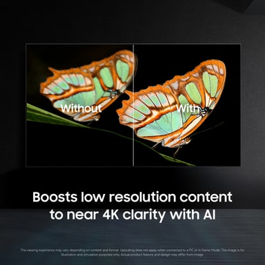 Samsungs kraftfulla NQ4 AI Gen2-processor använder 20 AI-neurala nätverk för att skala upp innehåll till 4K för högnivådetaljer, förfinade färger och kontrast anpassat till omgivningen. Real Depth Enhancer efterliknar det mänskliga ögas funktion för att skapa en bättre känsla av djup. Detta uppnås genom att göra det fokuserade objektet mer framträdande med hjälp av kontrast och definition.