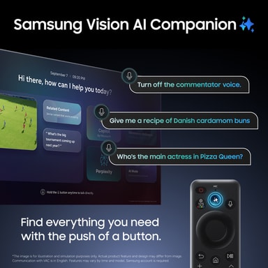 Samsungs kraftfulla NQ4 AI Gen2-processor använder 20 AI-neurala nätverk för att skala upp innehåll till 4K för högnivådetaljer, förfinade färger och kontrast anpassat till omgivningen. Real Depth Enhancer efterliknar det mänskliga ögas funktion för att skapa en bättre känsla av djup. Detta uppnås genom att göra det fokuserade objektet mer framträdande med hjälp av kontrast och definition.
