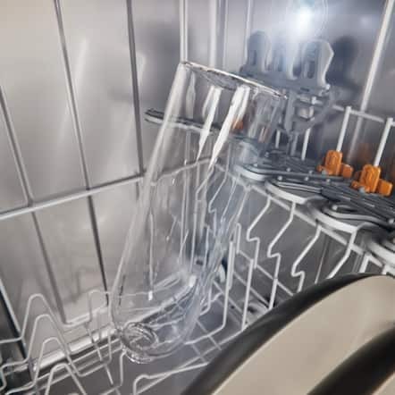 Brilliant GlassCare ser till att glas diskas varsamt. Fin-programmet diskar rent på bara 45 °C. Vinglasen står säkert i FlexCare-glashållaren med silikonvaddering. I slutet av diskprogrammet öppnas diskmaskinen automatiskt med den patenterade AutoOpen-torkningen. Glasen torkas, utan att efterpoleras – och sköts optimalt med våra exakt avstämda rengöringsprodukter med glasskyddsformel.
