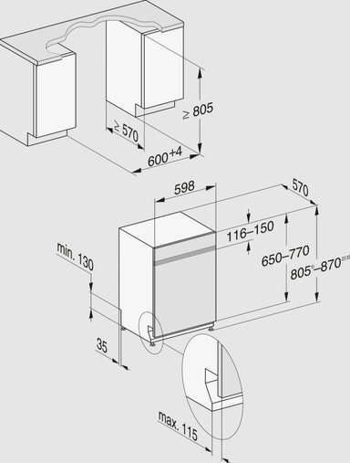 Vid installation av diskmaskin krävs ett oskadat, vattentätt och uppsamlande tråg tillsammans med ett vattenlarm som möter aktuella branschkrav. Dessa köps separat.