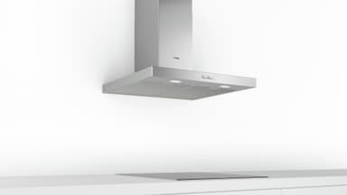 Bli av med lukt, ånga och fett från att laga mat enkelt tack vare den väggmonterade Bosch Series 2 köksfläkt DWB76BC50.Köksfläkten är utrustad med 2 LED-lampor för mer bekväm matlagning, 3 hastighetsnivåer och energieffektiv drift.