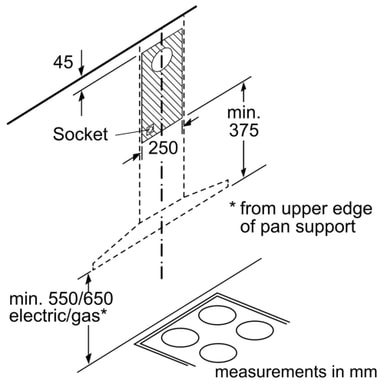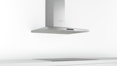 Bli av med lukt, ånga och fett från att laga mat enkelt tack vare den väggmonterade köksfäkten DWQ96DM50från Bosch Serie 4. Köksfläkten är utrustad med 2 LED-lampor för bekvämare matlagning och diskmedelskyddat metallfettfilter.