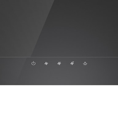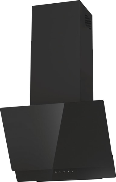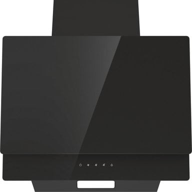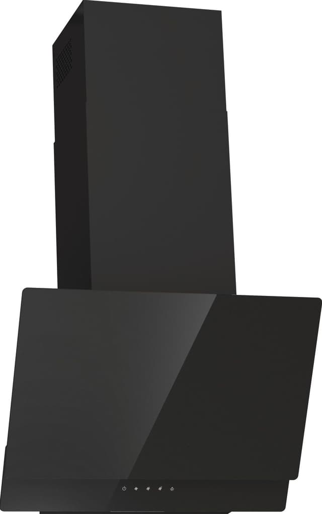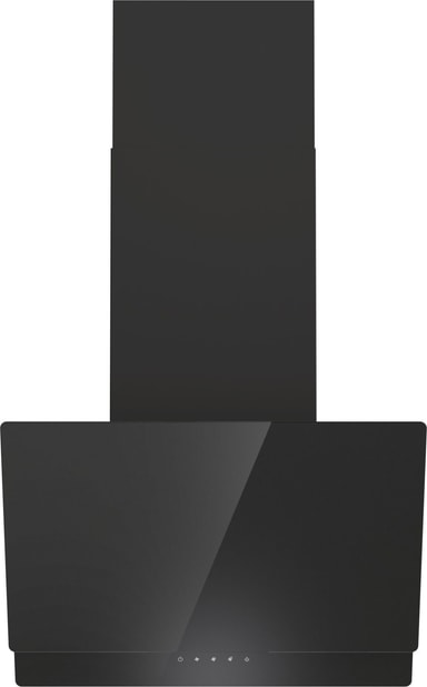 Väggmonterad köksfläkt, 60 cm. Svart glas. Vertikal. Energiklass B, Fettfilter C, Belysning A. 608 m³/h, 63 dB. Touch-kontroll för enkel styrning. Perimetriskt sug, Filter med polyuretanskum. LED-belysning för hållbar och effektiv belysning.