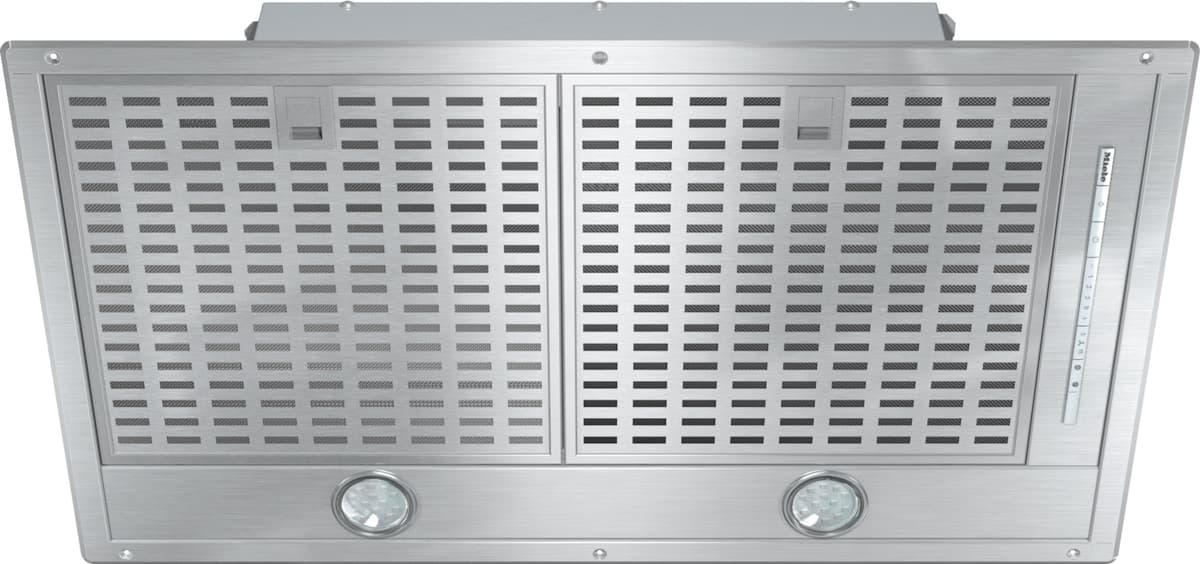 Mieles fläktar är utrustade med ett rostfritt metallfettfilter i 10 skikt som garanterar en hög fettavkiljning. Vid uttagning ser det integrerade fallskyddet till att hanteringen sker säkert och skyddar din häll mot skador. Täckskiktet och filterramen består av högkvalitativt rostfritt stål, vilket gör att inga synliga missfärgningar bildas vid rengöring i diskmaskinen och att den länge behåller sin yttre skönhet.