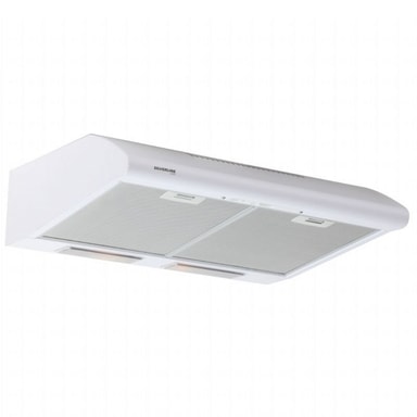 Underbyggd köksfläkt, 60cm, vit, kapacitet 139-215m3/h, ljudnivå 56-67 dB, mekaniska tryckknappar, Energiklass D.