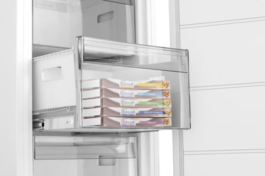 Big Box-delen ger dig tillräckligt med utrymme för att förvara stora föremål samtidigt som du kan utnyttja det tillgängliga utrymmet på bästa sätt. I kylskåpet med Hisense Big Box-frysfack kan du till och med förvara literstora glassbehållare eller en hel kalkon. Förvaringen av dessa föremål är enkel tack vare den maximalt utrymmesbesparande designen.