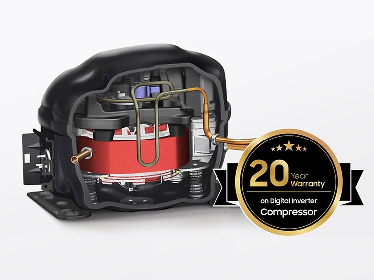 *Från 1 juli 2022 gäller en 20års reservdelsgaranti från inköpsdagen. Garantin gäller endast nämnd komponent, digitala inverterkompressorn på kylskåp, som säljs inom EU, och omfattar inga andra kostnader såsom arbetskostnader, frakt eller installation.