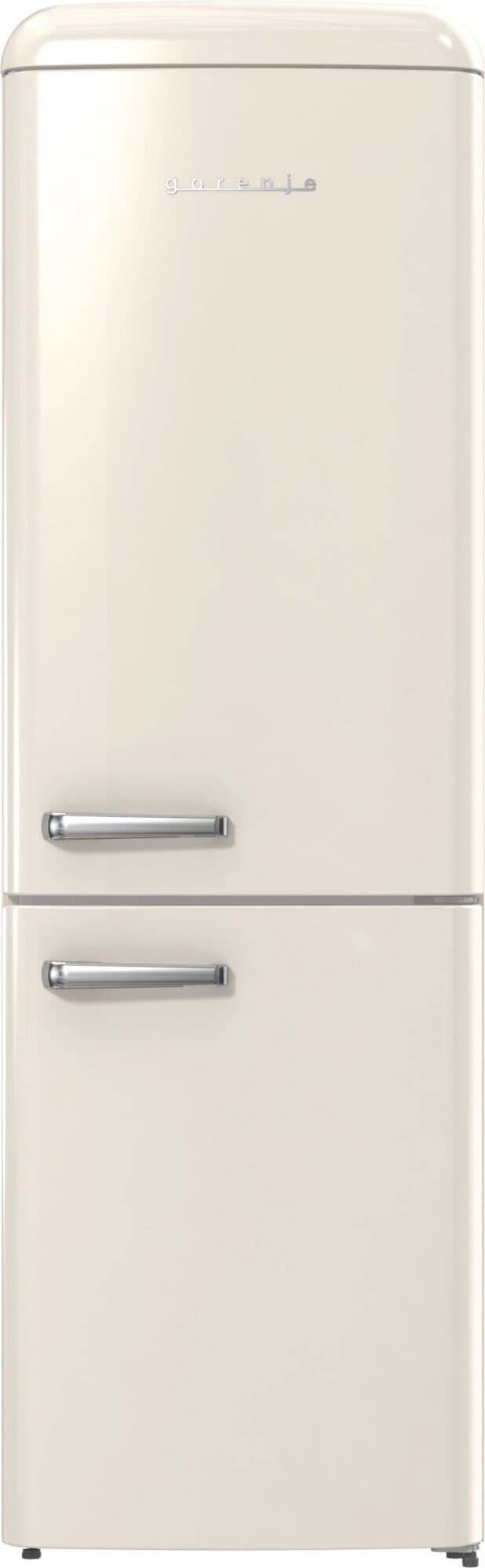 Gorenje Retro Collection, Kyl/frysskåp 194x60 cm, Champagne. Energiklass D. Frys med NoFrost Plus som förebygger ansamlingar av is i frysfacket. LCD-skärm. 300 l (204/96). 38 dB. IonAir med MultiFlow360 för att slippa dålig lukt i kylen. AdaptTech som förstår och anpassar sig efter dina vanor. CrispZone med Humidity Control för fräscha frukter och grönsaker. Högerhängd