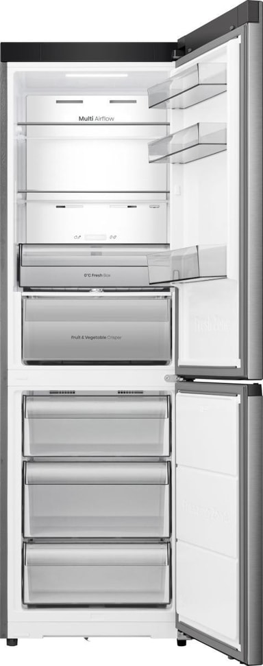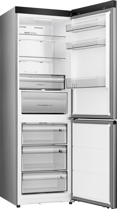 Hisense RB3K330SEIE är en fristående kyl/frys med stilren inox-finish och smarta funktioner som förenklar vardagen. Den kombinerar modern estetik med praktiska lösningar för att hålla dina matvaror fräscha längre – perfekt för kök där både design och funktion är viktiga.