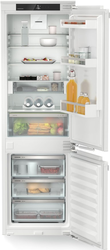 Liebherr Plus ICNc 5123-22 001 i vitt är ett förstklassigt inbyggt kylskåp designat för moderna kök. Det har avancerad kylteknik för att bibehålla optimal fräschör och energieffektivitet. Med justerbara hyllor och rymliga fack erbjuder det mångsidiga förvaringslösningar för alla dina matvaror.