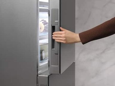 Kyl- och frysskåpsdörrar som stängs tyst och automatiskt: med det innovativa stängningssystemet SoftClose från Miele. Dörren stängs automatiskt från en vinkel på 30 grader. SoftClose dämpar också dörren vid stängningen – nu behöver du aldrig mer störa dig på klirrande flaskor när du öppnar och stänger dörren.