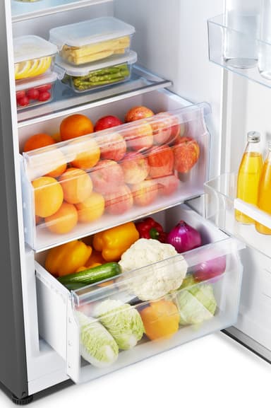 Epoq kylskåp ETR185X26D har en kapacitet på 370 liter och är utrustad med multi air flow-system för jämn kylning. Kylboxen och vinställ ger praktisk förvaring för färskvaror och drycker. Med NoFrost-teknologi är den underhållsfri.Läs mer om produkten