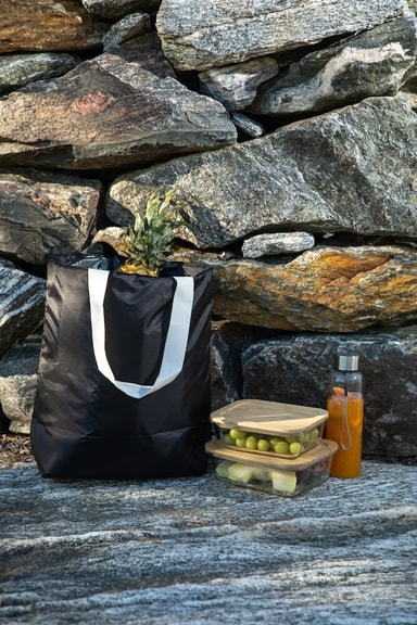 Rymlig kylväska i polyester med bärhandtag, dragkedja för stängning upptill samt ett mindre fack på framsidan. En dag på stranden, havet eller en utflykt? Då är denna kylväska perfekt att förvara lunch eller andra kylvaror i.