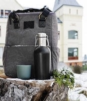 KylryggsäckSnygg ryggsäckskylbag i ordentlig canvas, stort huvudfack och tre mindre fickor för tillbehör. Ryggsäcken har reglerbara remmar och håller picknicken välkyld under hela dagen. Detaljer i PU-läder.Läs mer om produkten