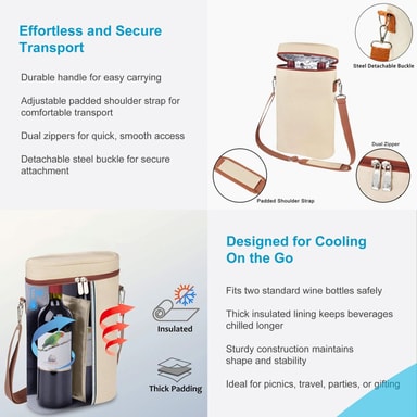 Dryckeskylaren för på resande fot kan enkelt hängas runt halsen eller bäras tack vare handtaget, vilket gör den särskilt lätt att transportera.