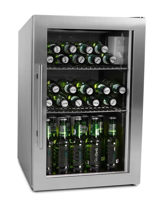 Unna dig en stilren ölkyl i rostfri finish till ditt hem! Ölkylen är tålig och går att placera i kallare miljöer som i t.ex. ett uterum, terass eller i ett garage. Ölkylen är dessutom IPX4-klassad, vilket innebär att den står emot vatten och fukt tillräckligt bra för att kunna installeras utomhus. Med de två lagren av glas i dörren och justeringen av temperaturer mellan 0-10 grader så blir ölen perfekt kyld och är klar att serveras!