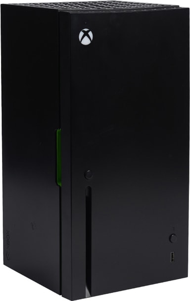 Minikylskåpet har en elegant, autentisk design som speglar den ikoniska Xbox Series X-konsolen. Den mattsvarta finishen, de skarpa kanterna och de karakteristiska gröna detaljerna gör det till en idealisk mittpunkt för alla spelutrustningar.