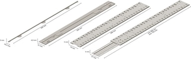 • • Tvådelade metallskenor i galvaniserat stål för montering av delade dörrfronter på helt integrerade diskmaskiner