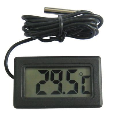 Digital mini termometer för Frysen / Kylen. Med lång kabel. Kompakt hygrometer med inbyggd termometer för inomhusbruk. Mätområde: -50 till +70 °C. Drivs med 2x LR44-batteri (medföljer ej). Mått: 46mm x 26.6mm lättnavigerad digital termometer vars stora skärm återger temperaturen i kylen eller frysen.