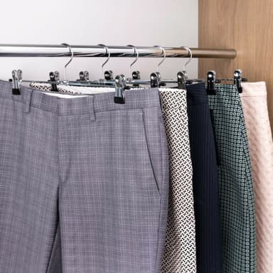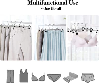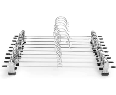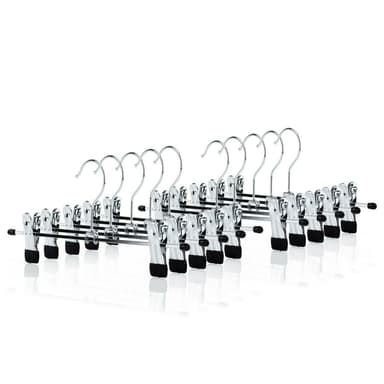 Robust klädhängare: Tillverkad av förkromad rostskyddad metall som håller länge och som även klarar tyngre eller blöta plagg. Med slitstarka halkfria och justerbara clips.