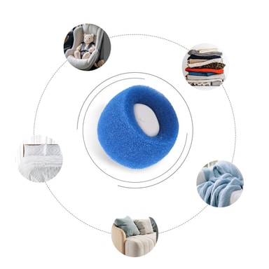 Effektiv pälsborttagare: Rengöringsbollen är gjord av skummaterial som effektivt absorberar djurhår, trådar, noppor och ludd på kläderna. Genom friktion med plagget samlas hår och liknande och du får rena och fräscha kläder.