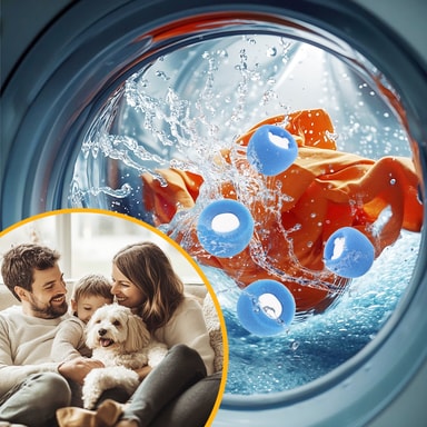 Tvättmaskin eller torktumlare: Pälsborttagaren kan användas både i tvättmaskinen (använd tvättprogram med centrifugering) och torktumlaren. För en välfylld maskin rekommenderas 3-4 tvättbollar.