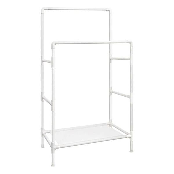 Klädställning med 2 klädstänger och förvaringshylla i vit metall