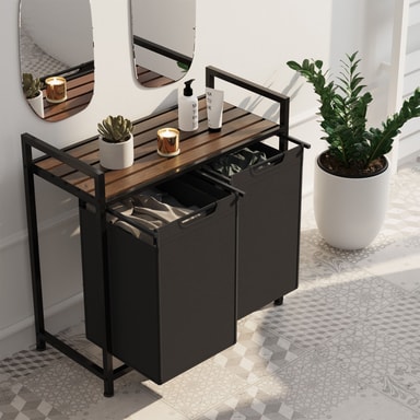 Ta ditt hem till en ny nivå av organisation med denna funktionella och stiliga tvättkorg från tectake. Med två utdragbara tvättpåsar, som vardera har en stor kapacitet, gör den det enkelt att separera smutstvätten. En smart lösning för hushåll som värdesätter ordning och struktur.