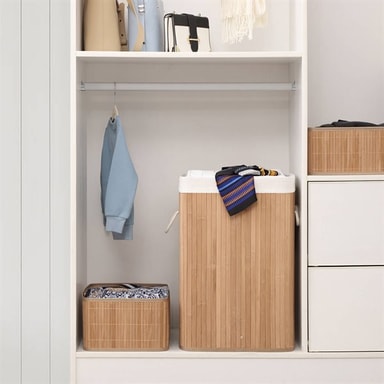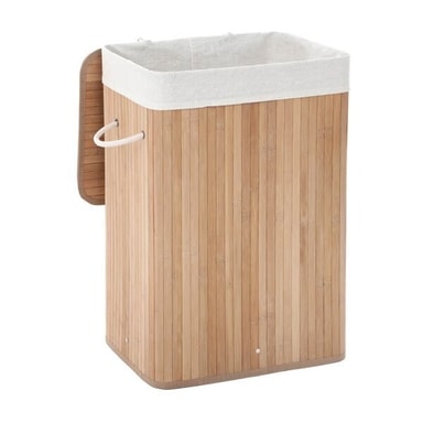 Denna stilrena tvättkorgen i bambu är både funktionell och dekorativ. Med en generös kapacitet på 72 liter rymmer den gott om tvätt utan att ta upp mycket plats. Den avtagbara tygpåsen med dragsnöre gör det enkelt att bära smutstvätten direkt till tvättmaskinen.