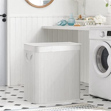 Tvättkorg med 3 fack och bambulock – 150 liter - Vit