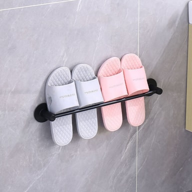 Mångsidig vägghållare: Ett stabilt rack av järn som kan fungera som exempelvis en vägghängd skohylla eller handduksstång.