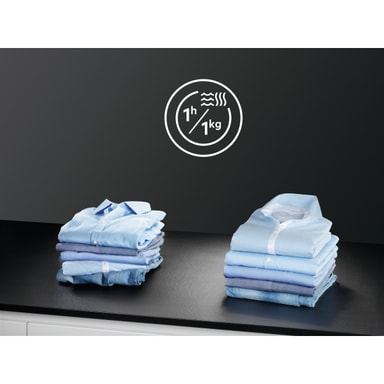 Ångprogrammet gör fibrerna i kläderna flexibla, vilket minskar skrynklor och behovet av att stryka. Dina kläder varar längre. Alternativet att snabbt fräscha upp kläder utan att köra omfattande program betyder också att de håller tidstestet med mindre exponering för temperatur och rörelse.