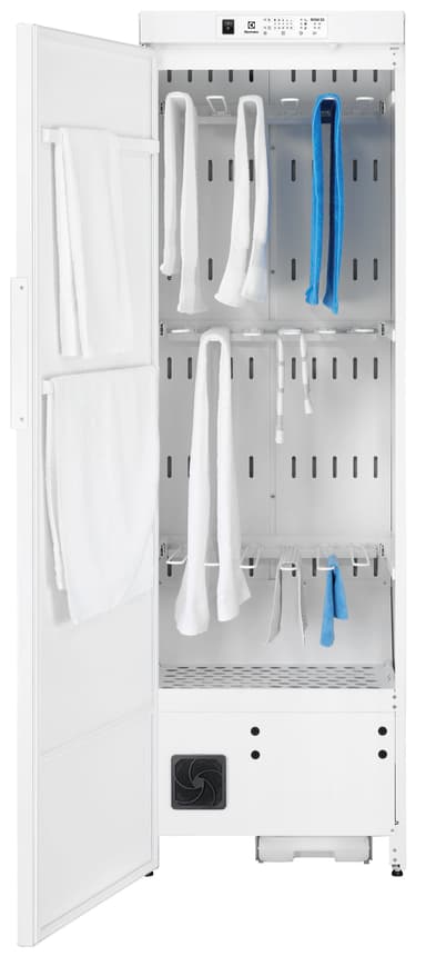 Kapacitet Skåpet erbjuder torkkapacitet på 4 kg och har plats för upp till 17 meter av tvätt. 3 nivåer av galgar inklusive 6 individuellt vikbara dubbelhängare ger gott om utrymme för alla dina tvättade kläder, hattar, skor eller handskar.