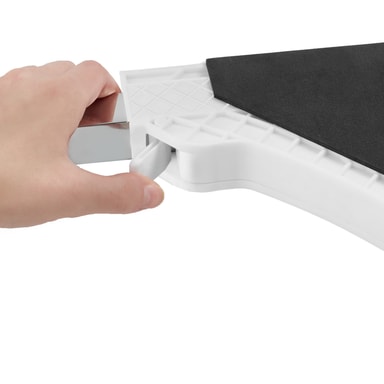 Ett robust spännband och stabiliserande skumgummiplattor förhindrar att enheterna glider och säkerställer ett säkert grepp. Den enkla konstruktionen förebygger en smidig montering som kräver varken borrning eller en komplicerad installation.