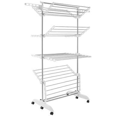 Skapa ordning och flexibilitet i ditt hushåll med det funktionella torkstället Odelia från tectake. De fyra steglöst höjdjusterbara nivåerna möjliggör torkning på flera plan samtidigt – idealiskt för handdukar, tröjor, sängkläder och mycket mer. Dessutom kan känsliga klädesplagg som skjortor eller klänningar hängas på sidan med hjälp av två utfällbara vingar.