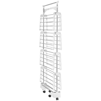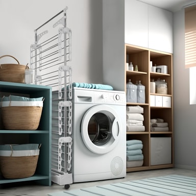 Tack vare de lättgående hjulen kan du enkelt och smidigt flytta torkställningen till önskad position – även när den är fullastad. De integrerade låsbromsarna säkerställer en stabil position. Särskilt praktiskt är den platsbesparande designen som möjliggör att enkeltfälla ihop och förvara tvättställningen när den inte används.
