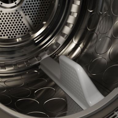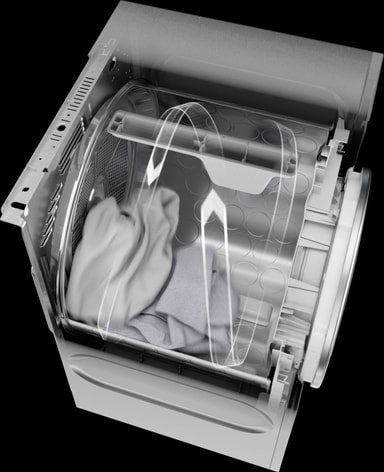 Andra torktumlare använder en "omvänd" torkningsprocess, vilket innebär att torktumlaren hela tiden ändrar riktning. Våra torktumlare tumlar tvätten i en åtta. Varsamt, oavbrutet och i en enda riktning utan att kläderna klumpar ihop sig. Detta är även skonsamt för bandet och motorn, vilket ger ökad hållbarhet. Air Lift™-paddlarna är utformade för att lyfta lasten så högt som möjligt och öka tiden i luftflödet. Det förhindrar att kläderna buntas samman och är skonsamt mot dina kläder: kläderna tumlas i en åtta; Air Lift™-paddlarna är utformade för att lyfta lasten så högt som möjligt och öka tiden i luftflödet; förhindrar att kläderna buntas samman; är skonsam mot dina kläder.