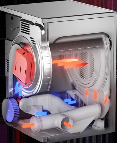En ventilerad torktumlare tar in extern luft vid rumstemperatur, värmer den och kör den genom den våta tvätten. Den fuktiga luften ventileras sedan ut via en tömningskanal. Processen upprepas tills tvätten är torr.