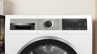 Bosch torktumlare WQG245EASN erbjuder en kapacitet på 9 kg med SelfCleaning Condenser™ och AutoDry för optimal textilvård.Läs mer om produkten