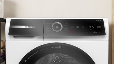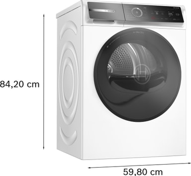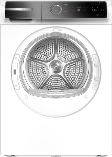 Bosch Series 8 torktumlare WRB247D0SN (9kg) vit erbjuder effektiv torkning med Self Cleaning Condenser, Air Max Dry, SmartDry och Speed Perfect Plus, med vändbar trumma, Home Connect och LED-trummbelysning för optimal klädvård.Läs mer om produkten